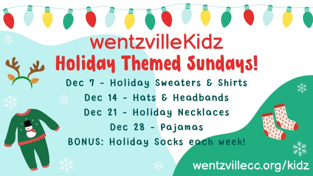 WentzvilleKidz, let’s have some fun this December and dress up each Sunday! Adults are welcome to join in on the fun too!